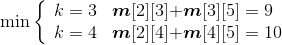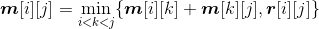 例如矩阵连乘问题,m[i][j]表示A i A i+1…A j矩阵连乘的最优解,根据最优解和子问题最优解的关系,并考查所有的选择,找到最小值即为最优解。