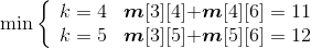 (6)按照递归式计算元素规模是5的{si,si+1,si+2,si+3,si+4}(j=i+4)的最优二叉搜索树搜索成本c[i][j],并记录最优策略,即树根s[i][j],i=1,2。