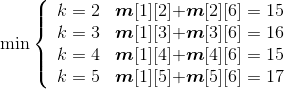 (7)按照递归式计算元素规模是6的{si,si+1,si+2,si+3,si+4,si+5}(j=i+5)的最优二叉搜索树搜索成本c[i][j],并记录最优策略,即树根s[i][j],i=1。