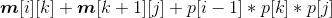 因此,原问题最优解和子问题最优解的关系为m[i][j]=m[i][k]+m[k+1][j]+ pi*pk+1*qj。